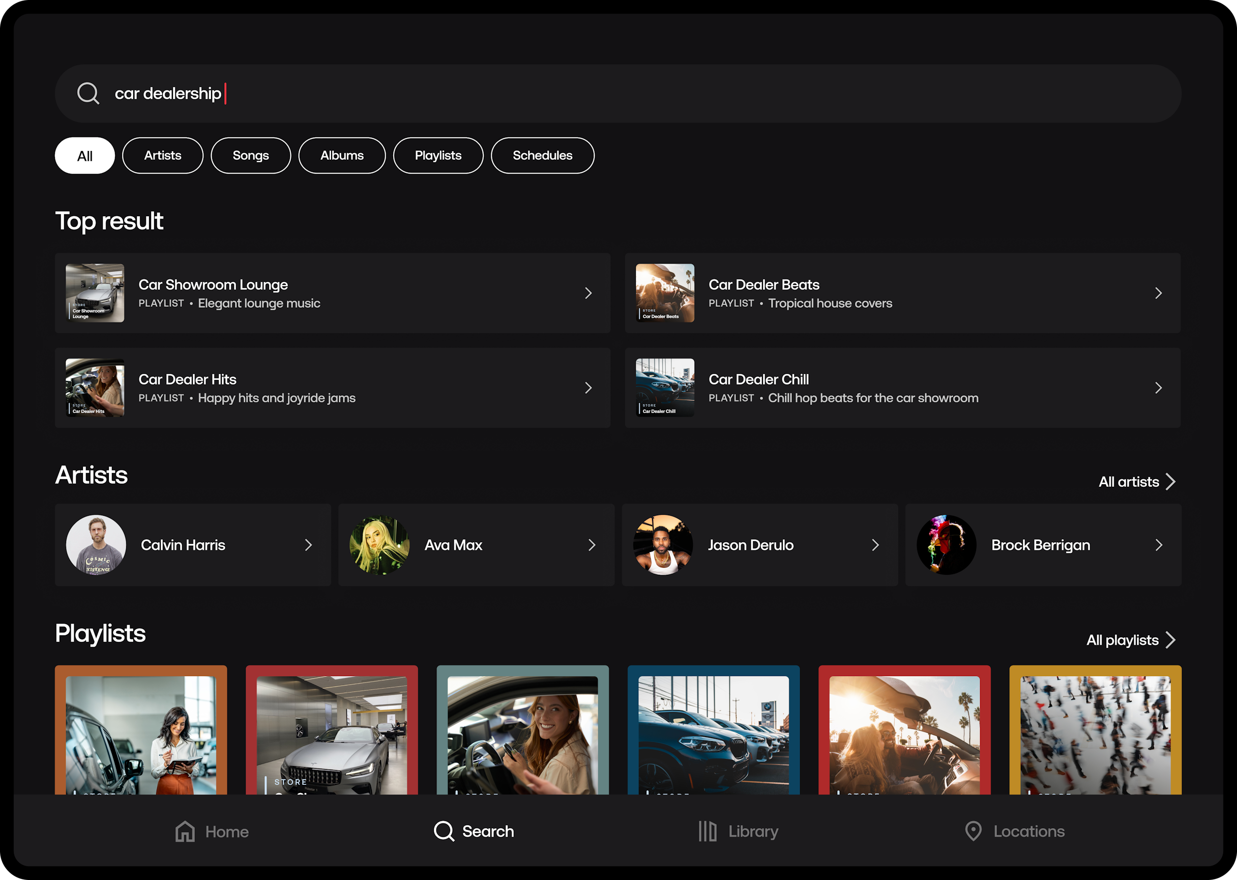 Soundtrack ist ein Musikstreamingdienst für Unternehmen, die ihre Marke mit Audio präsentieren. Du bekommst ein bekanntes Musikerlebnis, aber voller Premium-Funktionen. Wir haben den größten kommerziellen Katalog mit über 100 Mio. Songs und mehr als 1.500 professionell zusammengestellten Playlists.