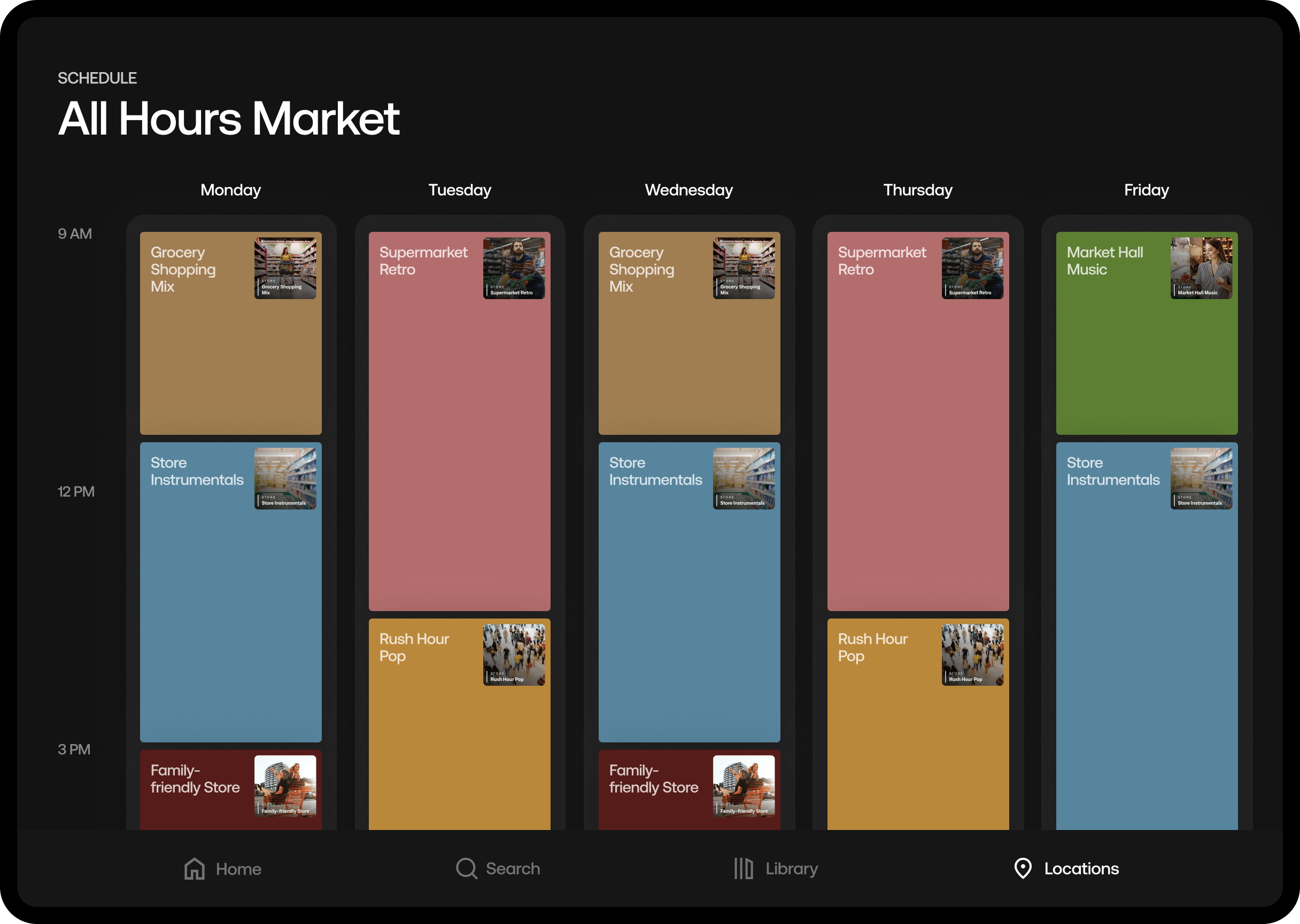 Der Musikservice für dein Lebensmittelgeschäft. Spiele Musik ab, die Kundinnen und Team gleichermaßen lieben. Soundtrack ist eine Musikplattform für Unternehmen, die mehr wollen.