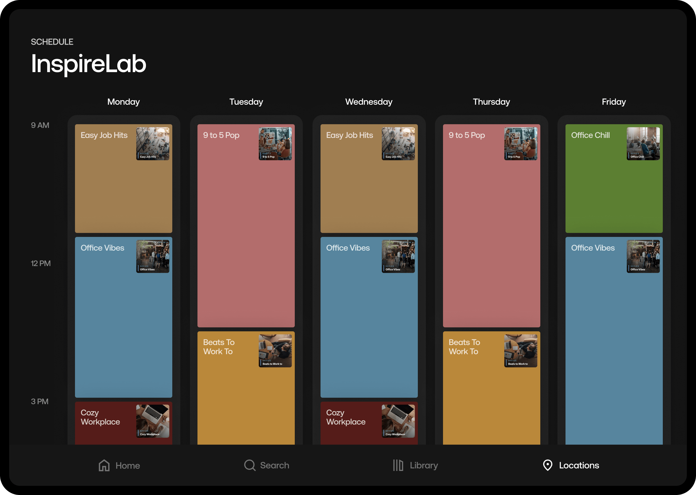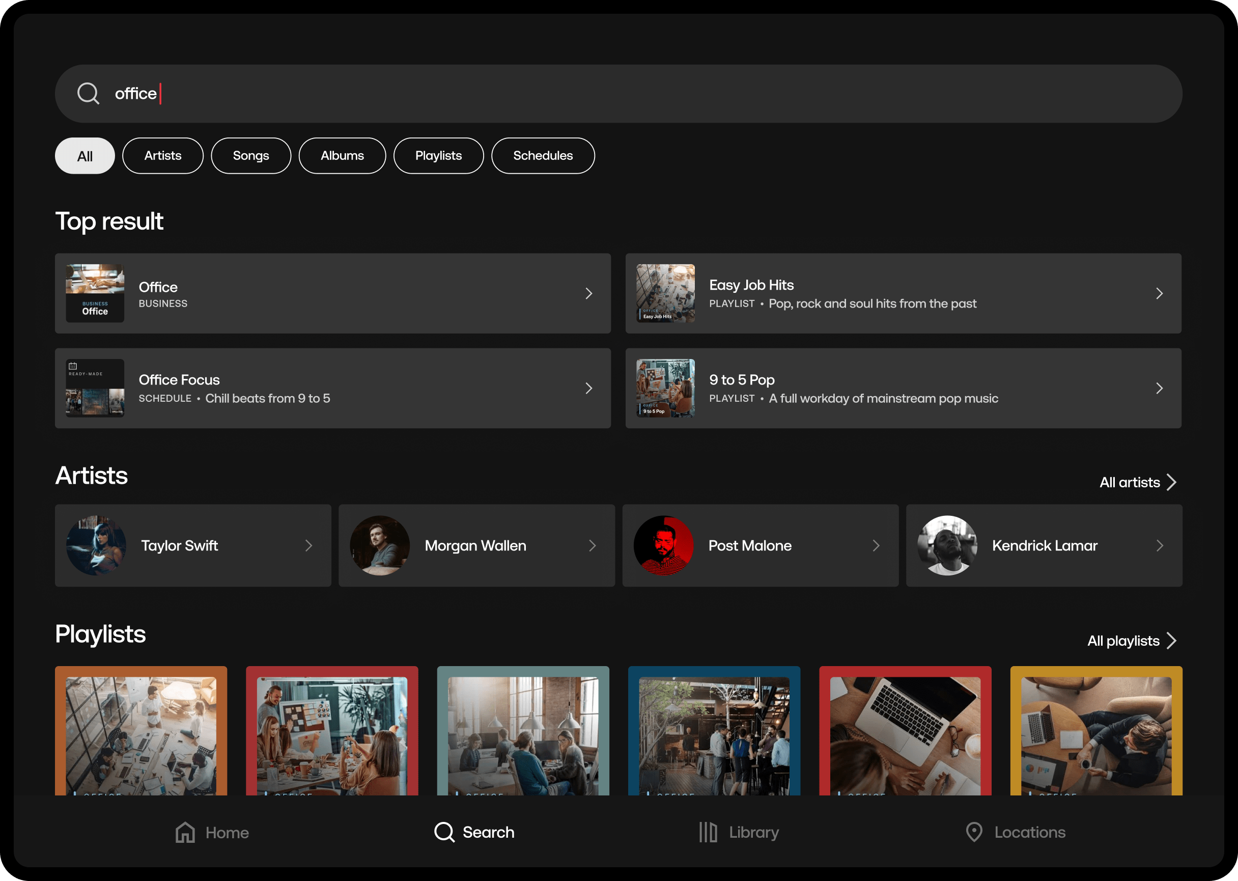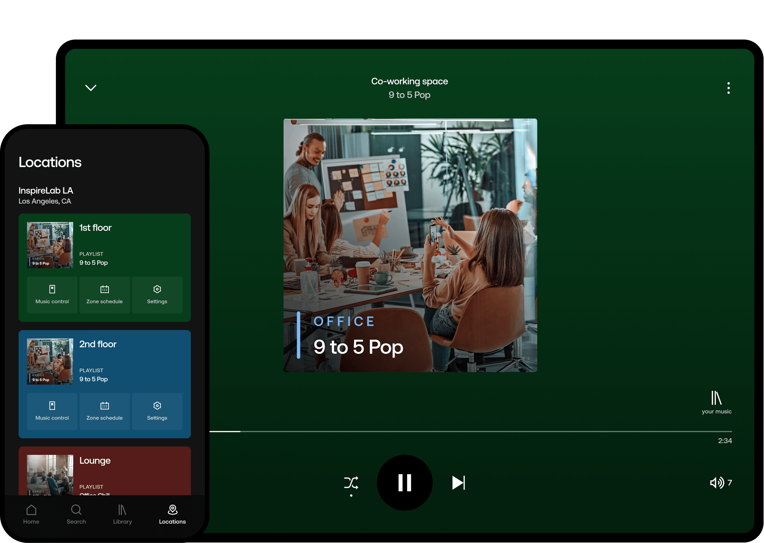 Soundtrack ist eine Musikstreamingplattfom für Unternehmen wie deines. Mit speziell für die Arbeit kuratierten Playlists schaffst du im Handumdrehen die perfekte Atmosphäre. Ein Unternehmensservice mit individuellen Features für dein Büro.