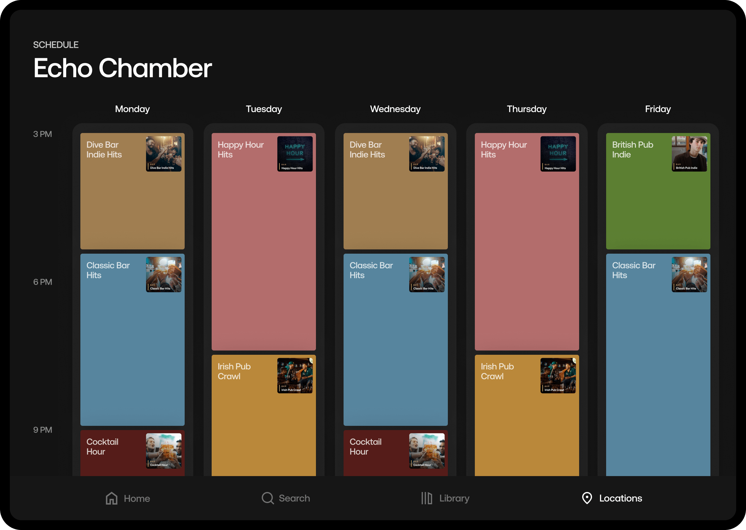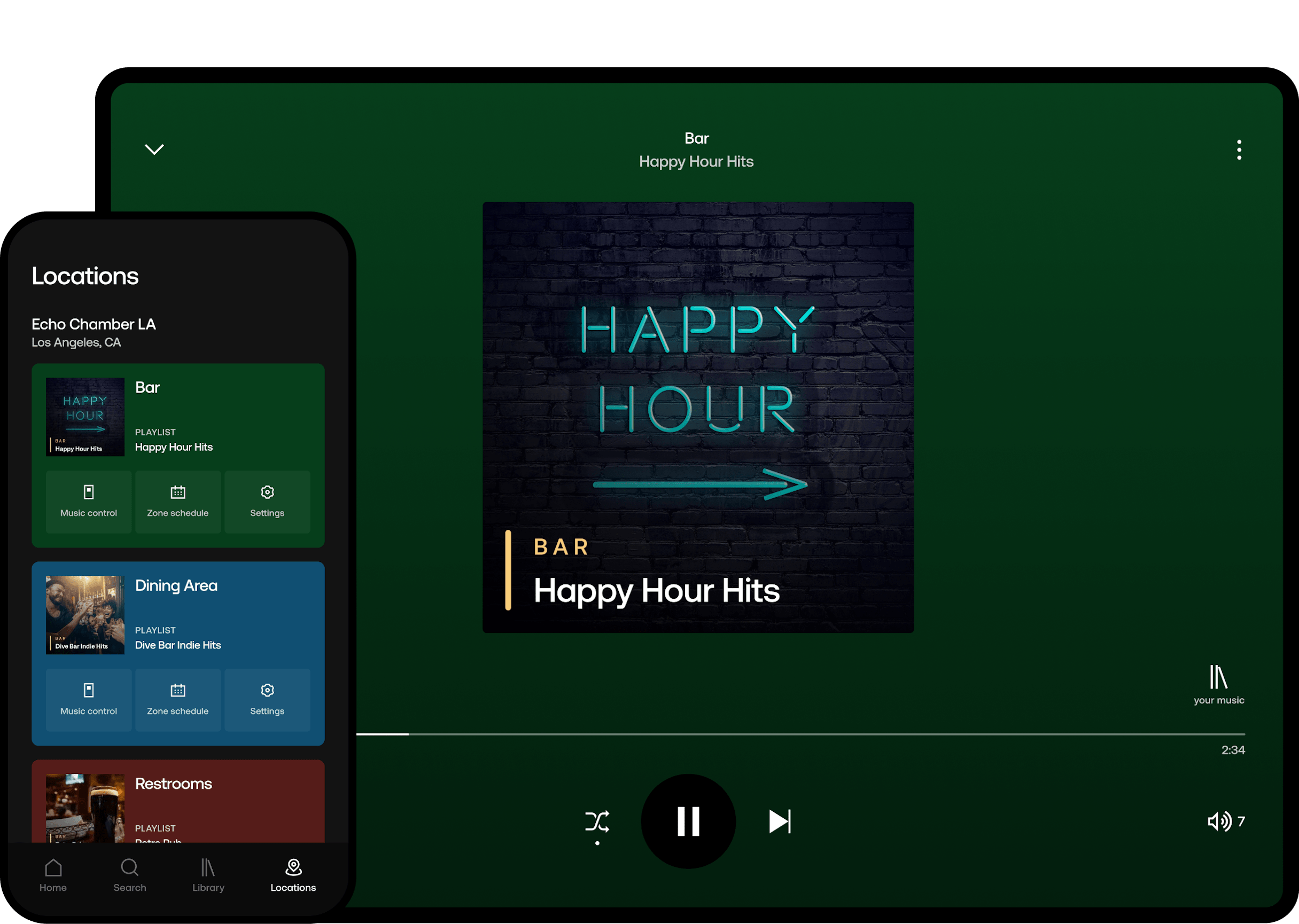 Spela musik från en plattform som har tagits fram för att passa barer som din. Skapa en fantastisk musikupplevelse för dina gäster med Soundtrack. Använd en professionell musiktjänst som gör att du kan fokusera mer på dina gäster.