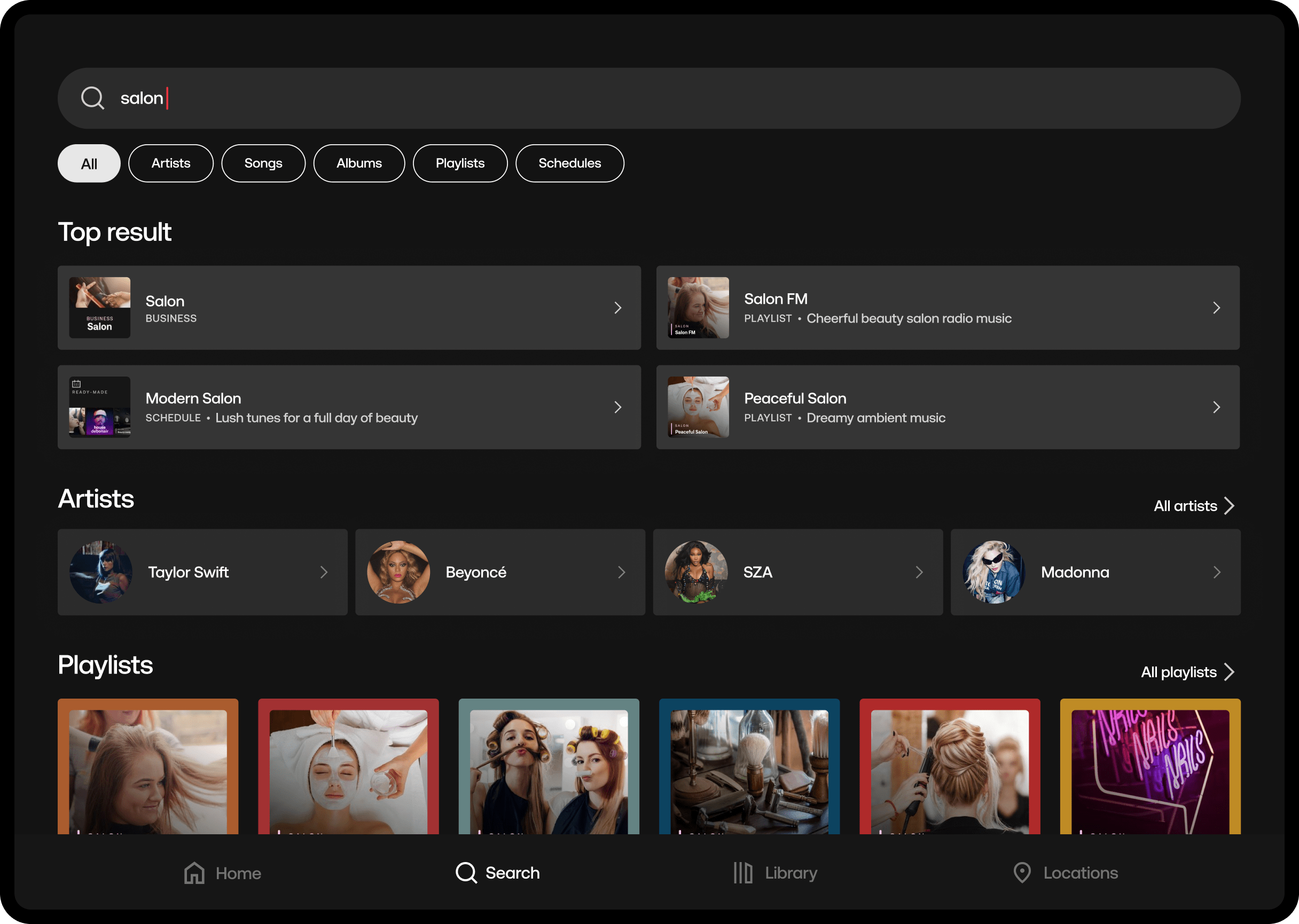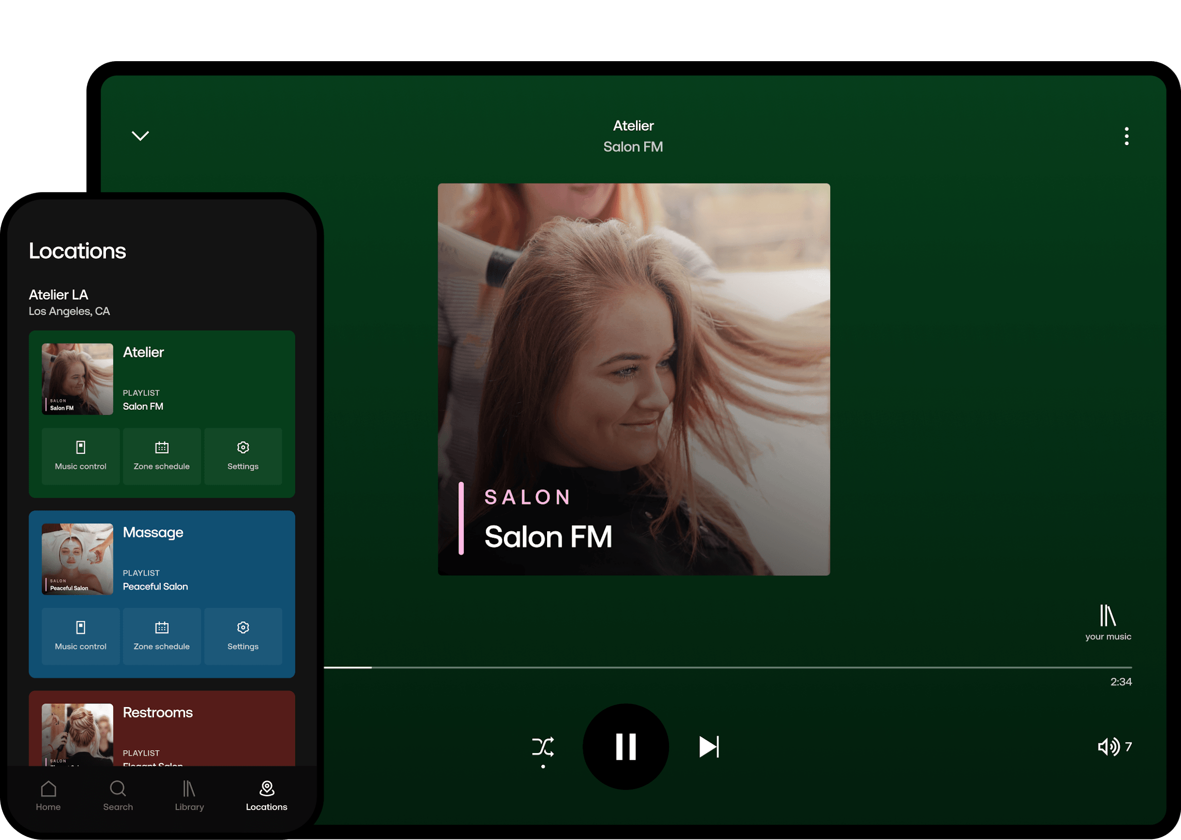 Spela musik från en plattform som är skapad för salonger som din. Ge din personal och dina kunder en fantastisk musikupplevelse med Soundtrack. Använd en tjänst som gör det enkelt att spela licensierad musik på din salong.